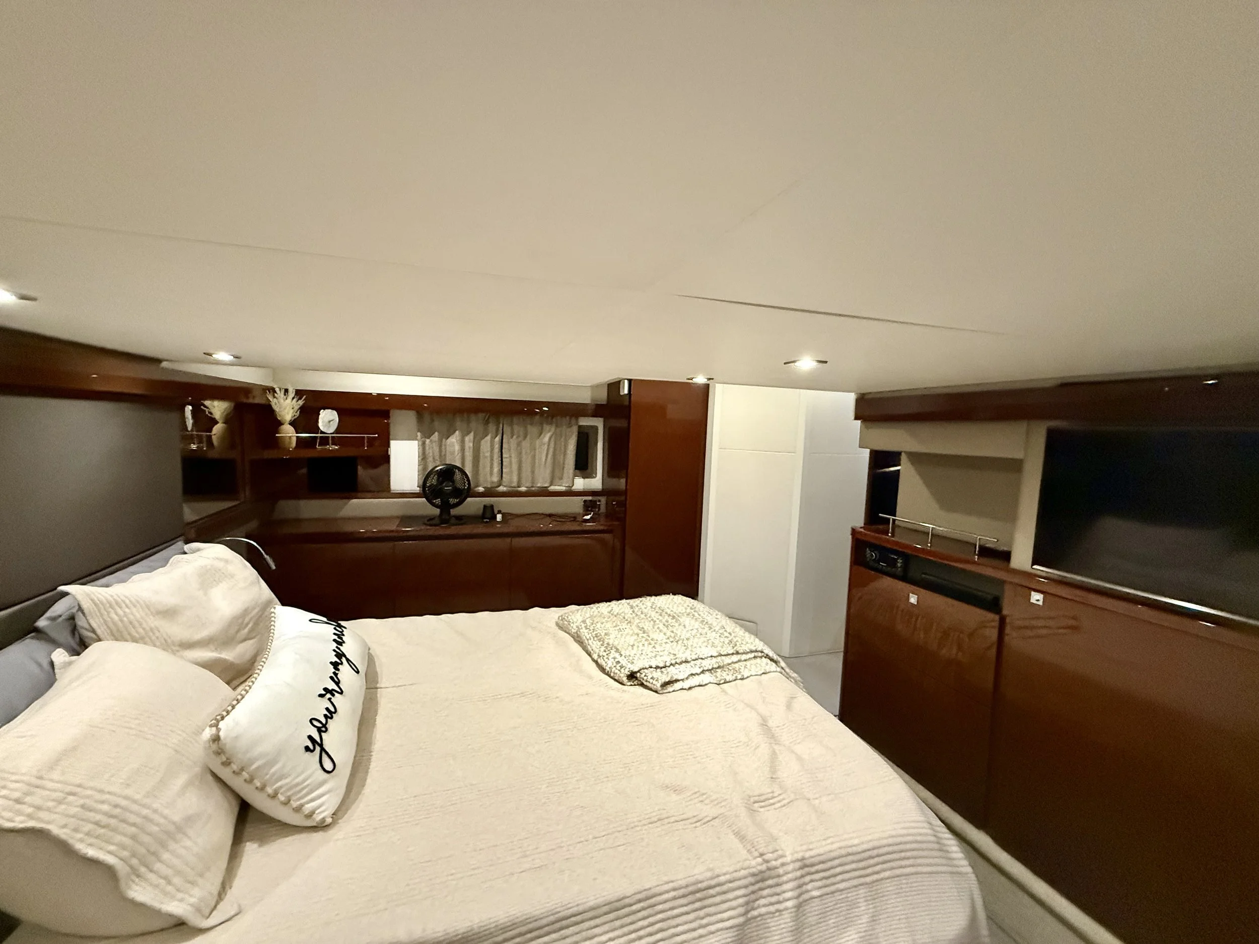 Two Staterooms, Two Heads – spacious VIP suite forward and private master suite mid-ship.